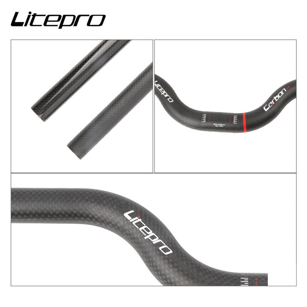 Litepro Carbon Fiber M-Bar for Folding Bikes - 25.4mm, 540/580mm, 124g, 3K Weave, Gloss/Matte Black (Riser Handlebar) Litepro Carbon Fiber M-Bar for Folding Bikes - 25.4mm, 540/580mm, 124g, 3K Weave, Gloss/Matte Black (Riser Handlebar)