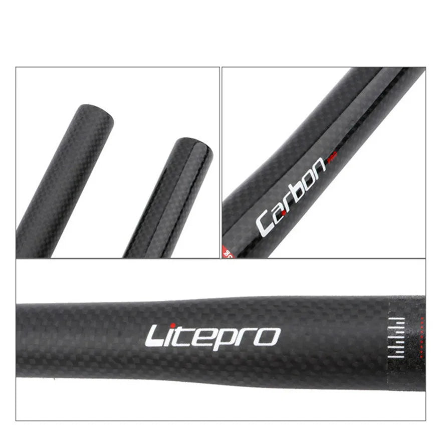 Litepro Full Carbon Fiber Handlebar for Folding Bikes - 25.4mm*540/580mm, 108g, 3K Weave, Gloss/Matte Black Litepro Full Carbon Fiber Handlebar for Folding Bikes - 25.4mm*540/580mm, 108g, 3K Weave, Gloss/Matte Black